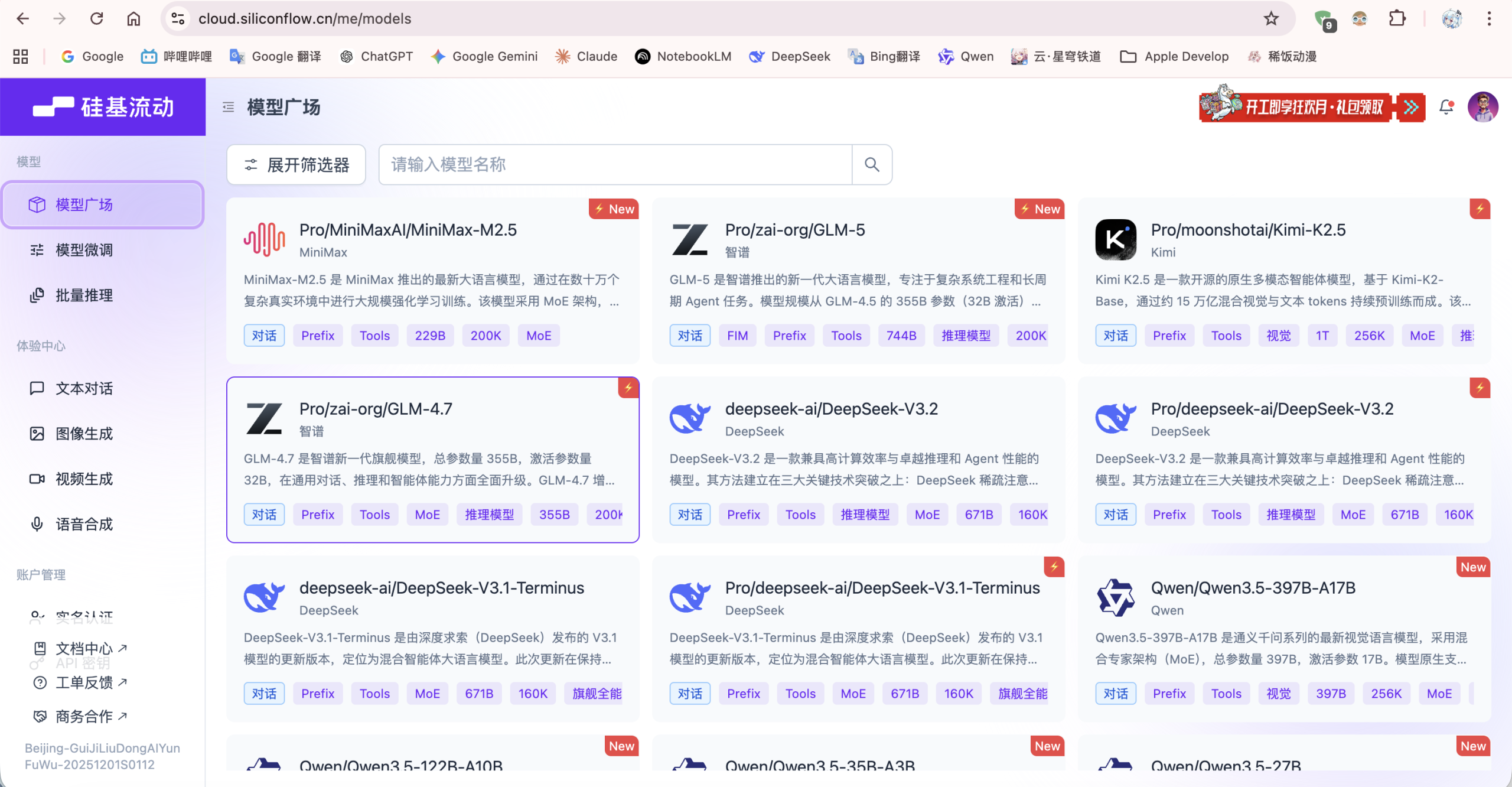 你可以在SiliconFlow上注册账号,进入如下界面